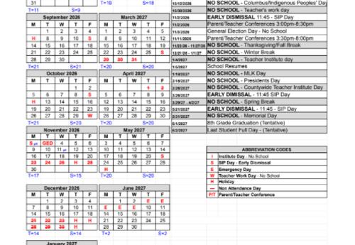 Here is the Approved School Calendar for the 26/27 school year ...